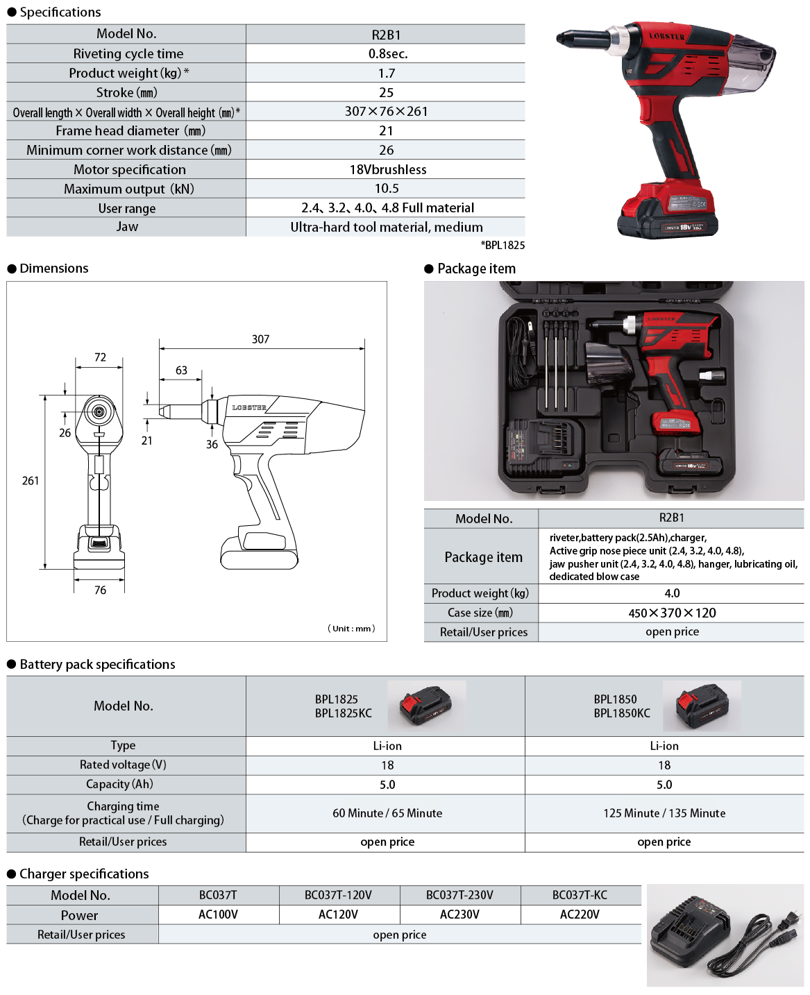 (High speed equivalent to that of Lobtex’s fastest air riveter R1A1)