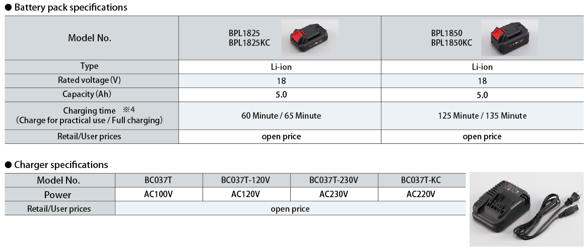 When fastening LOBSTER rivet nuts with a fully-charged battery pack (BPL1825) mounted. The maximum fastening quantity varies depending on the type of rivet nut.
