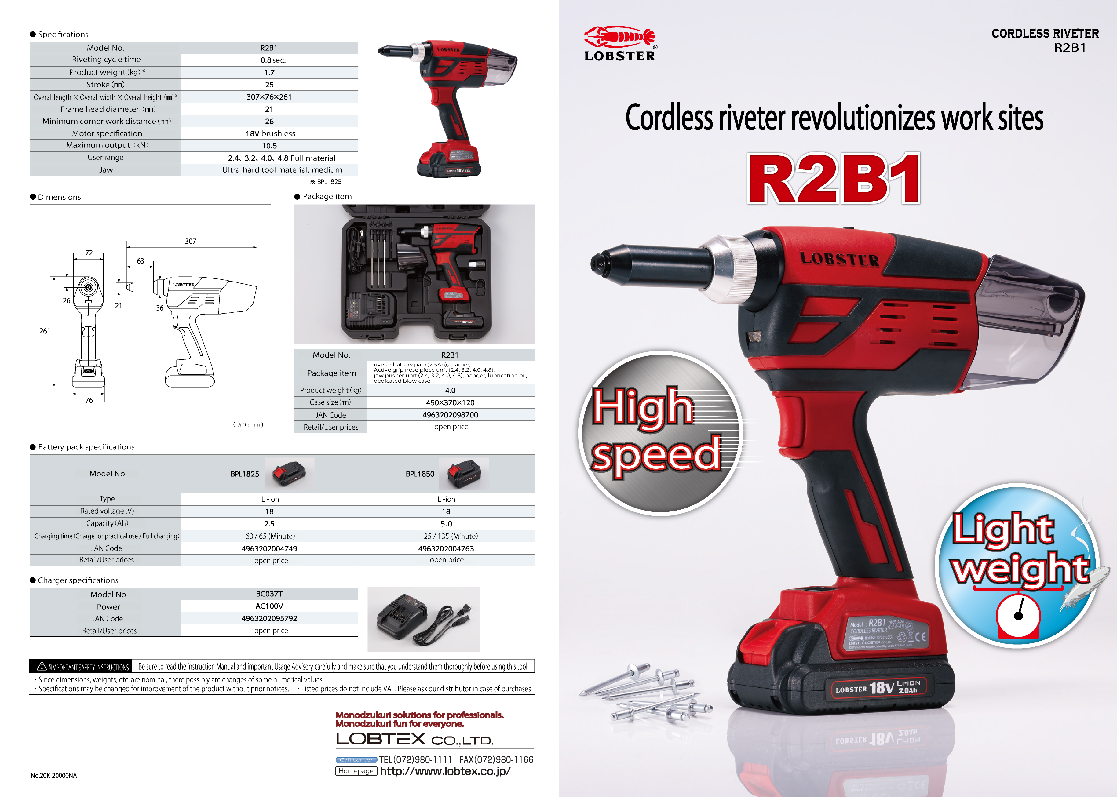 (High speed equivalent to that of Lobtex’s fastest air riveter R1A1)