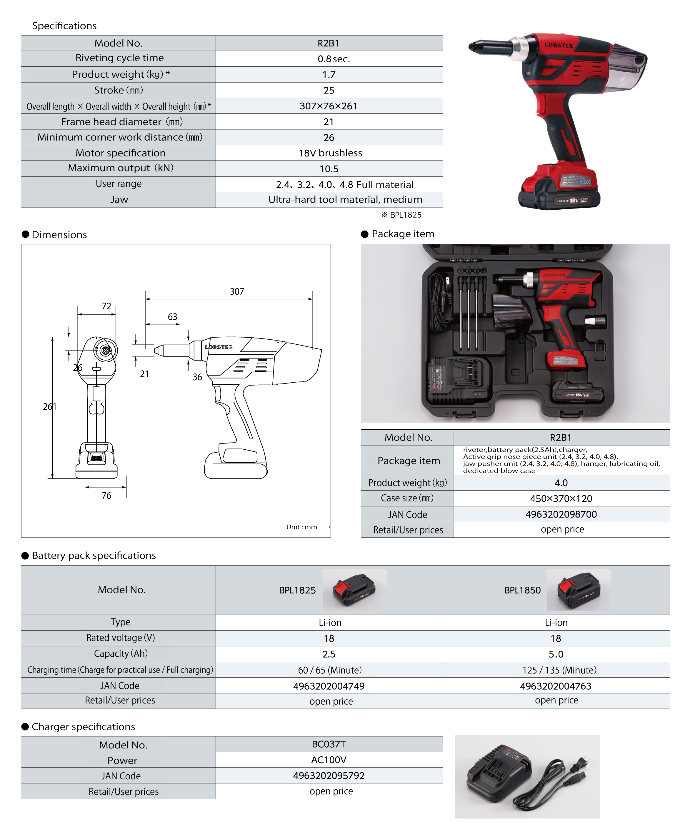 Ultra-high-speed riveting, equivalent to fastest air riveter*1