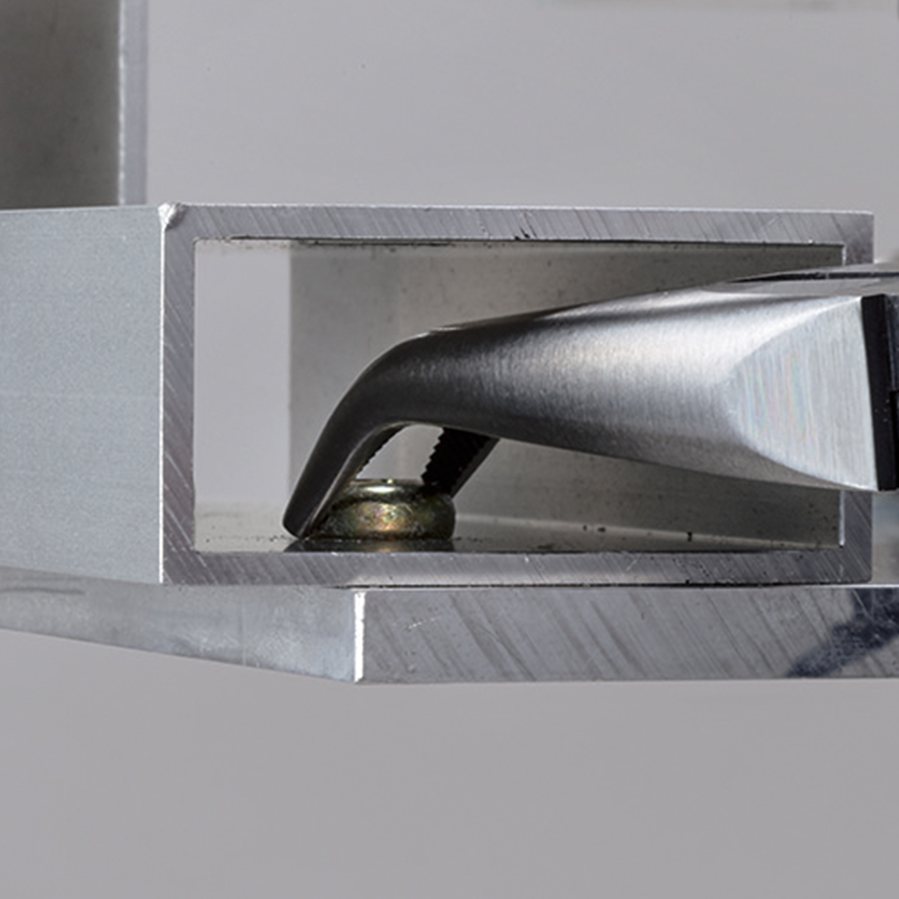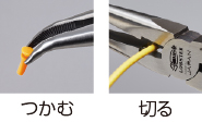 縦方向に余裕のない狭い場所でも、 45°の縦曲がりなら楽につかめる! 少し奥まった所でも、 通常のラジオペンチより楽な角度で 先端を確認しながら作業可能!